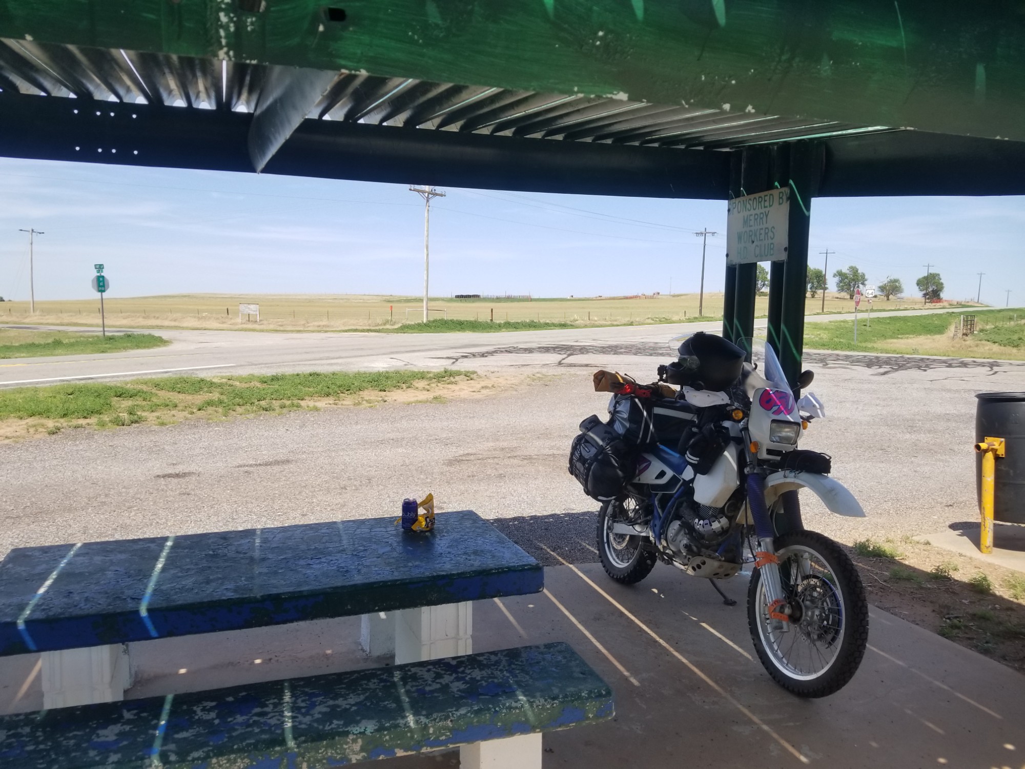 In the morning, with an early start to reach higher altitudes before the heatwave struck, I raced into the southwest corner of Kansas, gassed up and grabbed some breakfast burritos from a Loves Travel Stop, and set out on a two lane road towards Colorado.